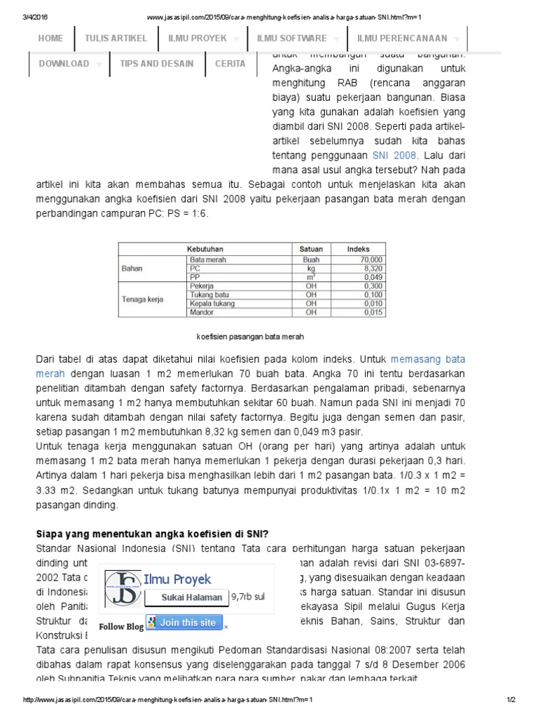Cara Menghitung Koefisien Analisa Harga Satuan SNI PDF PDF Sumber : www.scribd.com